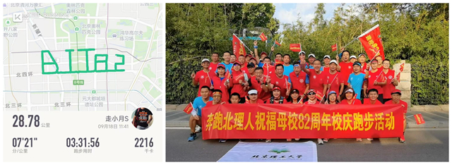 此外,1982级校友刘刚、21993班校友赵伟臣还代表自动化学院校友参加了线下“奔跑北理人,为母校庆生”云跑活动,最终经过3小时31分56秒的坚持,跑完了28.78公里,完美的跑出“BIT82”字样的路线图。还有多位校友通过“云捐款”的方式表达了自己对母校82周岁生日的美好祝福!